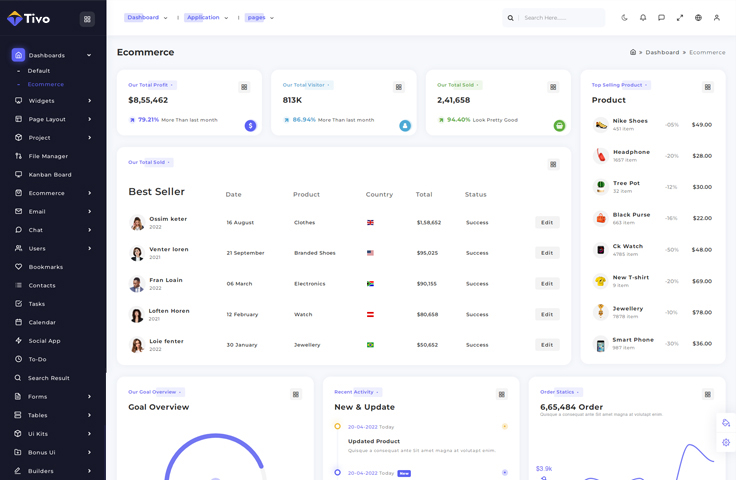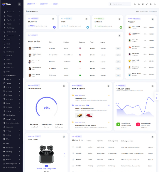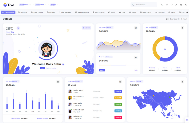 Tivo admin template includes 42+ new and usefully Components.